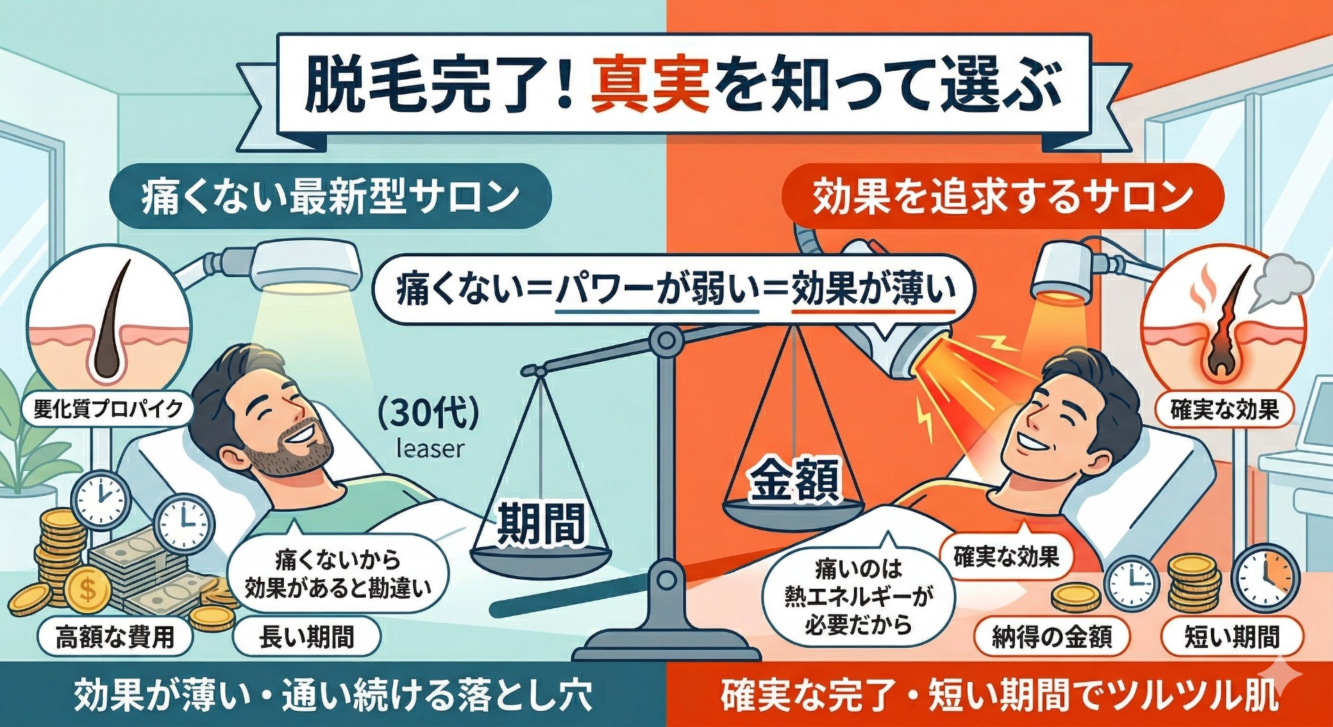 サロンの選び方だけで、完了までにかかる「期間」と「金額」は天と地ほどの差が生じます。